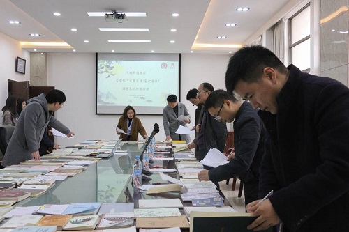 学生处副处长康海军、校团委副书记张合、文学院副院长段勃等老师担任活动评委。活动伊始,文学院党委副书记高飞向各位评委老师介绍了本次活动的要求,学院先以班级为单位,每位学生提供自己的一本课堂笔记参与评选,每个班级按人数推选出5%优秀课堂笔记参与院级评选,除各班推选的优秀课堂笔记外,学院按班级人数再抽取5%学生笔记,以共计10%的课堂笔记参与院级评选,最终评选出优秀学风班级和优秀学习个人。评审中,各位老师通过交流确定了评审标准和各项细节。评选作品中不乏有许多字迹工整、排版合理、内容结构清晰的优秀笔记,老师对其中较为优秀的笔记交口称赞,并表示这才是我校应有的良好学风,学院学生应有的学习态度。