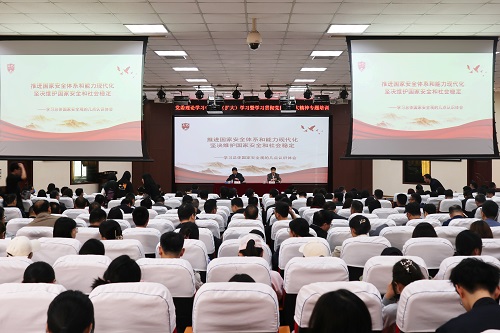 王宗敏指出,党的十八大以来,以习近平同志为核心的党中央高度重视国家安全工作,创造性提出总体国家安全观,全方位推动国家安全工作,党的二十大首次将“推进国家安全体系和能力现代化,坚决维护国家安全和社会稳定”以专章形式写入大会报告。一要切实提高认识。深刻认识国家安全的重要性和紧迫性,自觉学习总体国家安全观,把握核心要义,自觉将理论学习成效转化为维护国家安全的生动实践。二要切实担当责任。坚决扛起维护国家安全的政治责任,进一步强化底线思维和风险意识,把维护国家安全各项措施抓实抓细抓落地,做到守土有责、守土负责、守土尽责。三要切实形成合力。各职能部门要坚持系统思维,整体谋划、协调推进学校各领域安全工作,全面夯实校园安全基础;全体教师要充分发挥国家安全宣传教育主力军作用,课上课下、讲活讲透国家安全知识,引导青年学生共同筑牢维护国家安全的坚强防线。