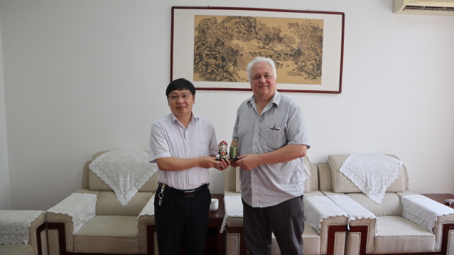李学志对两位教授的到来表示欢迎,简要介绍了河南的历史、文化、教育概况及我校的历史沿革、办学特色、办学成就等,重点介绍了我校国际合作交流现状及下一步实施开放办学、走国际化发展道路的思路与措施。希望两位教授发挥自身优势,为我校引进海外高层次人才、实现中外合作办学机构突破牵线搭桥。Nolte教授对我校的热情接待表示感谢,结合自己在中美两国高等学校与科研机构较长时间的工作经历,比较了中美两国高校管理、人才培养、课堂教学、学生教育的异同,对两国高校之间开展师生交流、科研合作、合作办学等提出了很好的意见和建议。Nolte教授表示,愿意为我校拓展与美国相关高校之间开展合作办学提供帮助。随后,双方就非法人中外合作办学机构申报中的有关问题进行了深入交流和探讨。