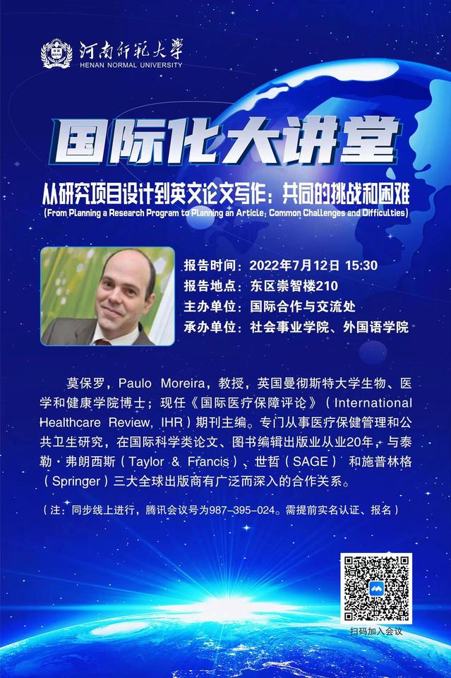 莫保罗(Paulo Moreira)教授,英国曼彻斯特大学生物、医学和健康学院博士,现任《国际医疗保障评论》(International Healthcare Review, IHR)期刊主编,专门从事医疗保健管理和公共卫生研究,在科学出版和编辑方面拥有超过20年的经验,与泰勒·弗朗西斯(Taylor & Francis)、世哲(SAGE)和施普林格(Springer)三大全球出版商有广泛而深入和合作关系。