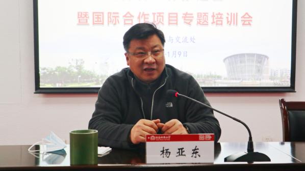 1月9日上午,我校2023年度国际化工作推进会暨国际合作项目专题培训会在勤政楼第四会议室举办,副校长杨亚东出席并讲话,各学院国际化工作负责人、工作秘书、引智平台及项目负责人、国际合作与交流处全体工作人员参加会议。会议由国际合作与交流处处长赵扬主持。