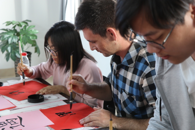 在中国书法体验活动中,曹家元老师首先讲述了中国书法的历史演变和发展过程,讲授了书法的书写要领和技法,最后带领大家一起书写体验。中外学生共同书写了“海内存知己,天涯若比邻”,共话中外友谊。中国成语和中国诗词以分组比赛的形式进行。活动中,学生们反应迅速、团结合作,在欢乐的活动氛围中,共同体会着汉字之美。参加活动的同学们纷纷表示,通过中国书法、中国成语、中国诗词等各具特色的国际中文日体验活动,感受到了汉字和中国文化的博大精深,激发了进一步学习中文、汉字和中国文化的动力。