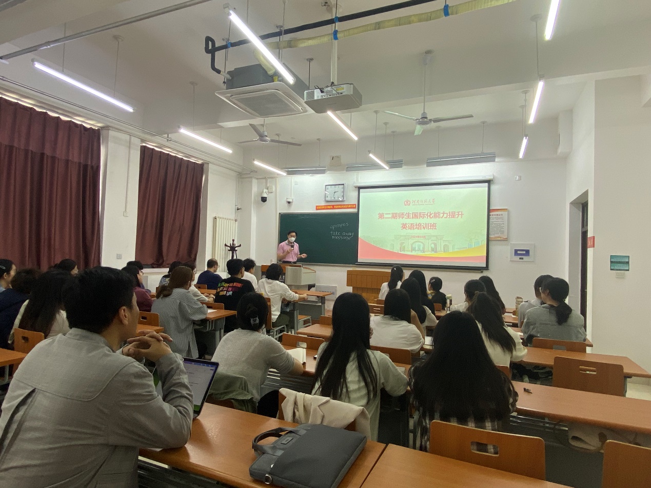4月18日下午,我校第二期师生国际化能力提升培训班在文昌楼534教室正式开课。经个人申报、学院推荐、学校选拔,来自全校各学院(部)的60余名研究生作为参训学员,参加为期12周的英语交流能力培训课程。