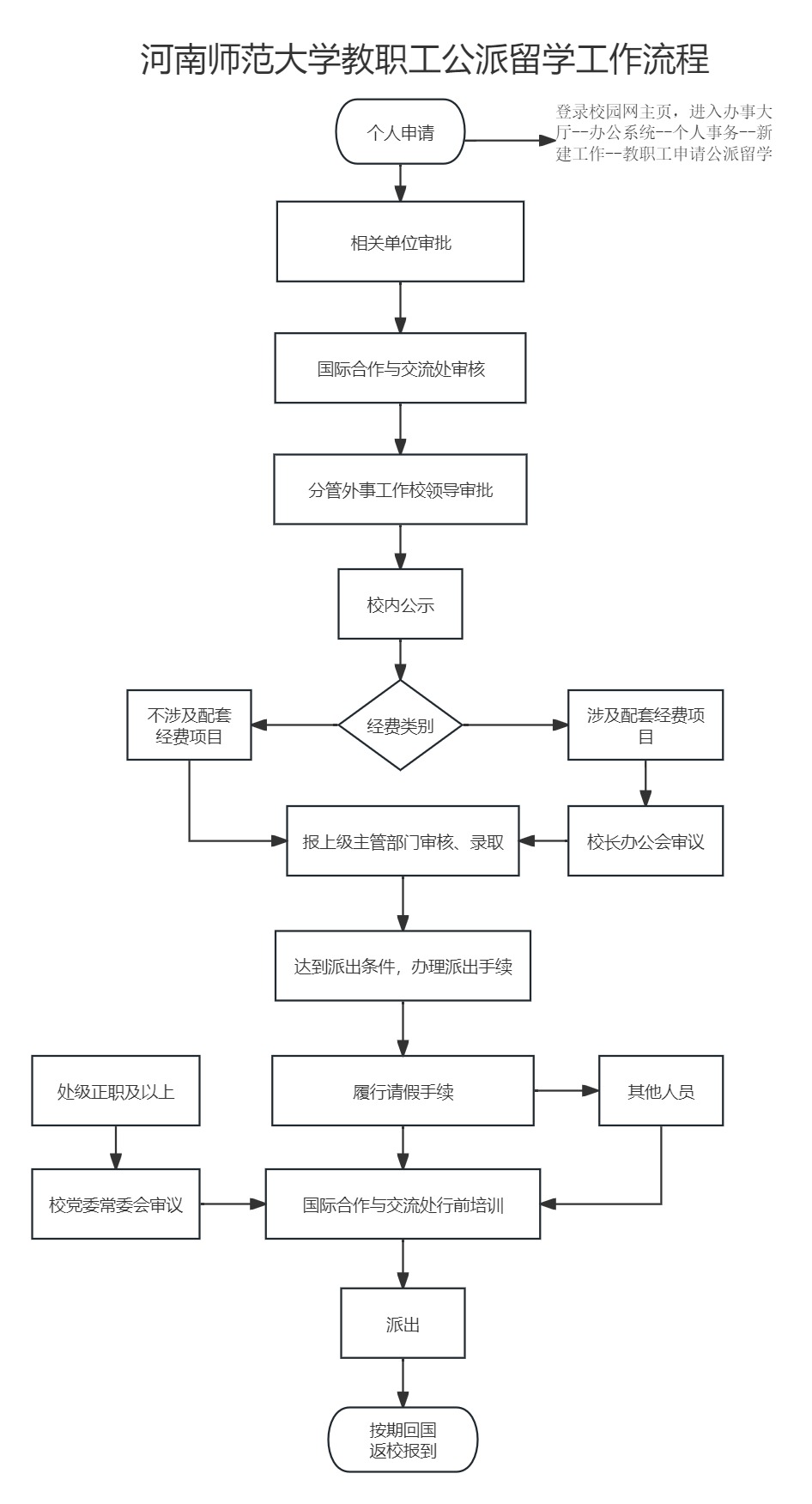 ③登录校园网主页,线上填报“教职工申请公派留学”(完成签批后打印)、《所在单位推荐意见》(经申请人所在单位、相关职能部门审核签署意见并加盖公章)。