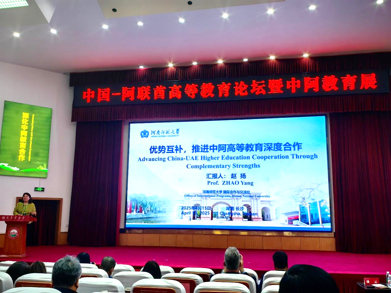 4月15日,由教育部中外人文交流中心指导,湖南省人民政府外事办公室、湖南省教育厅支持,湖南农业大学主办的中国-阿联酋高等教育论坛暨中阿教育展在长沙举行。40余所国内高校和10余所国外机构和高校的近百名专家学者参加。我校受邀参加会议并作报告。