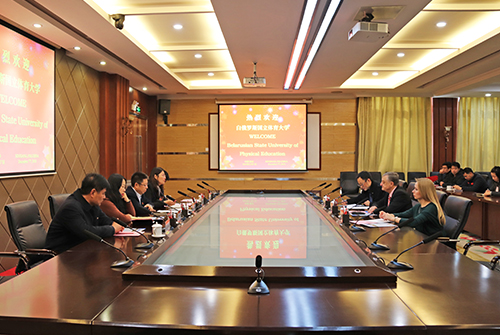 近日,白俄罗斯国立体育大学副校长西亚希·沙吾鲁克一行3人访问我校。我院党政领导会同国际合作与交流处、国际教育学院负责人在勤政楼第三会议室同来访客人进行会谈。校党委常委、副校长马治军出席会议并致辞。