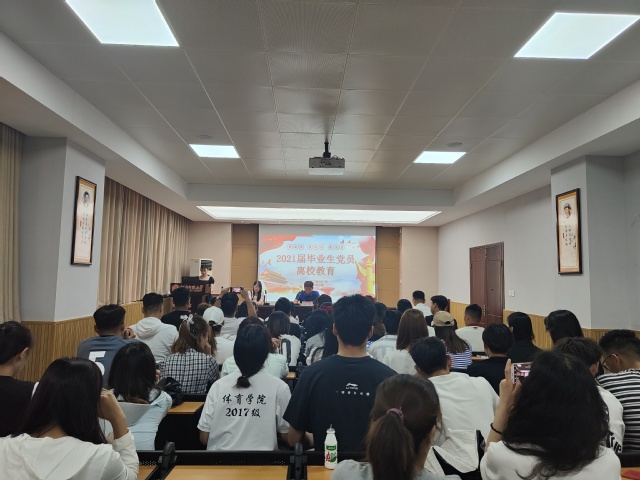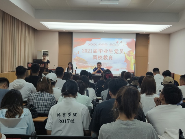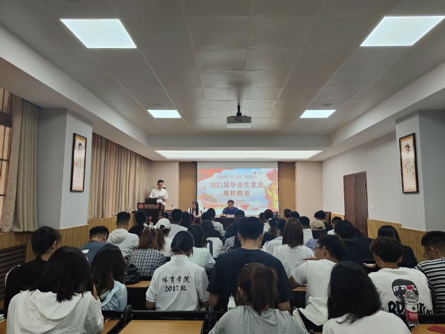 为做好毕业生党员的离校教育工作,引导毕业生党员自觉学习党的光辉历史,强化责任意识和担当意识,6月7 日上午,体育学院举行2021届毕业生党员最后一堂党课,院党委书记王允、院长岳贤锋、党委副书记王芳出席,党员教师代表和全体毕业生党员参加。本次党课由王芳主持。