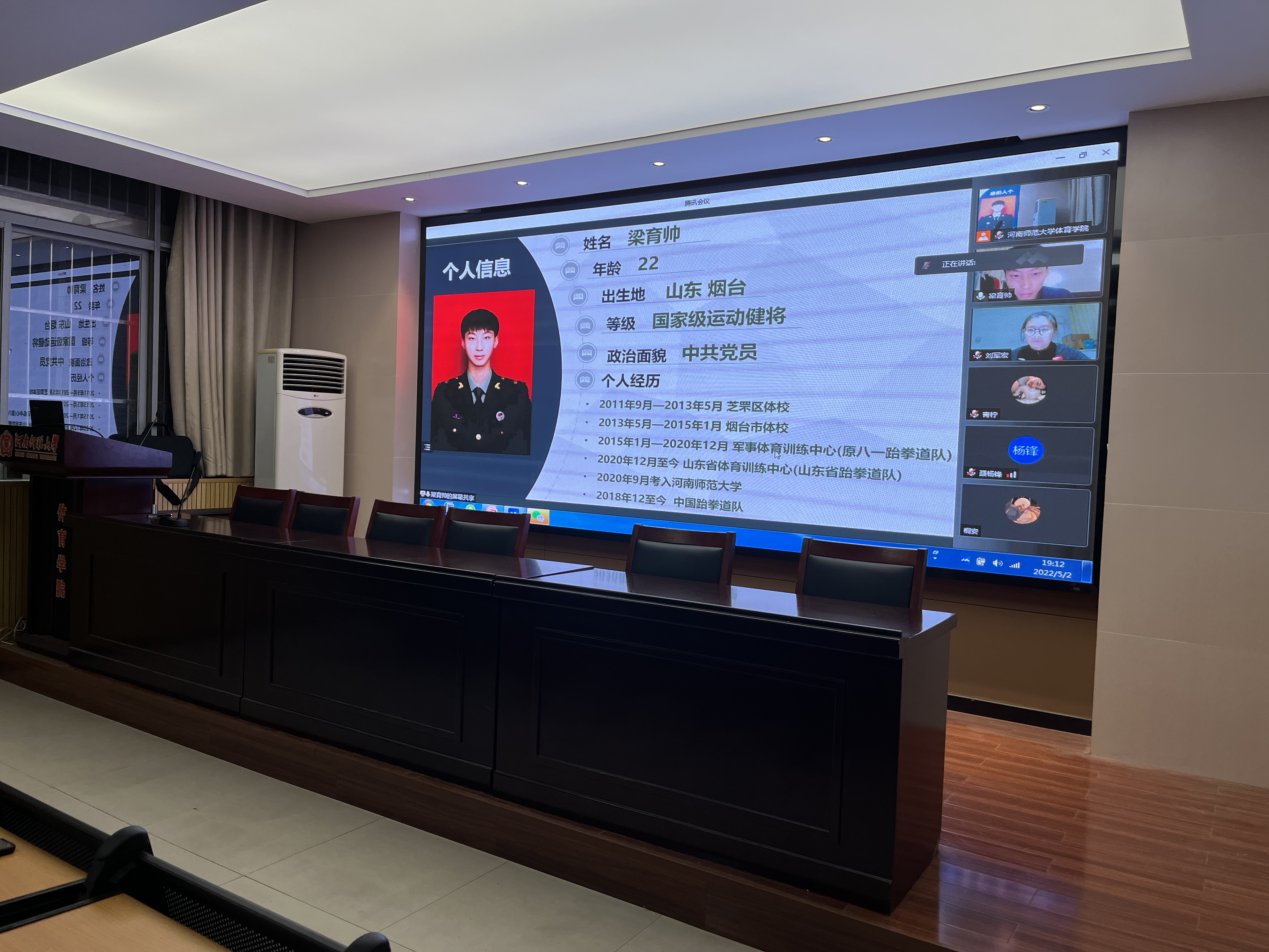 为深入学习贯彻习近平总书记关于体育的重要论述,推进学院能力作风建设年活动,创新体育育人形式,贯彻“五育并举”,促进冠军精神走进校园,帮助学生从体育运动中汲取成长的力量,体育学院特举办冠军讲堂特色活动。52日晚上,体育学院冠军讲堂开班仪式在学院一楼会议室举行,讲堂第一期邀请梁育帅、刘军宏、王壮三位同学担任主讲。体育学院120余名师生参加,本次活动采取线上线下相结合的方式进行,活动由体育学院党委副科级组织员石教乐主持。