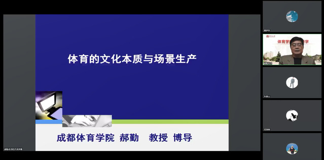 在师大百年校庆来临之际,为营造良好学术氛围,提高学院师生科研水平,11月10日下午,国家社科基金重大项目首席专家、成都体育学院博士生导师郝勤教授应邀为学院师生作了一场题为《现代体育的文化本质与场景生产》的线上报告。体育学院院长岳贤锋、副院长孟国正、李玉周及部分师生共200余人聆听了此次报告。报告由岳贤锋主持。