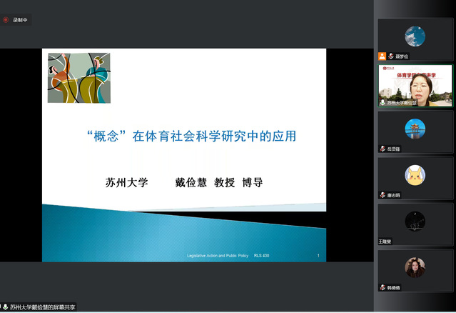 在师大百年校庆来临之际,为营造良好学术氛围,提高学院师生科研水平,11月18日上午,苏州大学博士生导师戴俭慧教授应邀为学院师生作了一场题为《“概念”在体育社会科学研究中的应用》的线上报告。体育学院院长岳贤锋、副院长孟国正及部分师生共200余人聆听了此次报告。报告由岳贤锋主持。