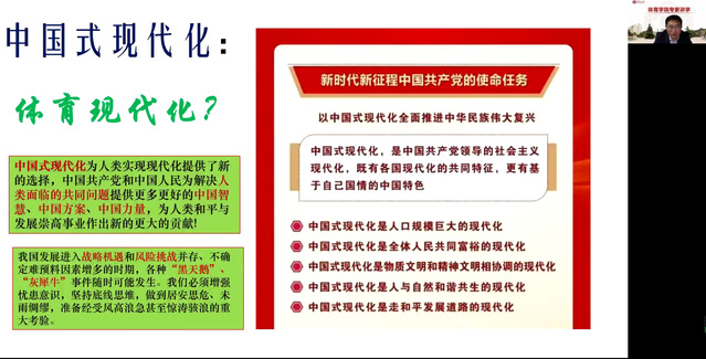 张大超教授从新世纪以来我国体育发展特征及国民体育观质的演变、新时代对体育事业发展提出的新诉求、我国竞技体育训练新趋势及对省队训练的启示、俄罗斯、美国、西班牙校园体育的发展模式及我国的启示等五个方面进行了阐述,并结合党的二十大精神对体育现代化进行了详细的解读。张大超教授用丰富的素材、案例,通过理论与实践相结合的方式,为学院师生送上一场精彩的学术讲座。讲座结束后,多位师生就体育改革的相关问题与张大超教授进行了深入的交流。