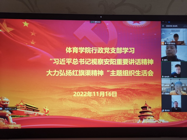 根据校党委《关于以“深入学习习近平总书记视察安阳重要讲话精神,大力弘扬红旗渠精神”为主题召开专题组织生活会的通知》要求,体育学院党委认真组织学院14个党支部,在11月13日——11月25日期间,通过线上线下相结合的方式,规范召开了专题组织生活会。