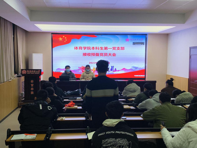2022年11月30日下午,体育学院本科生第一党支部通过线上、线下相结合的方式召开了接收预备党员大会,会议由党支部书记董强主持,支部全体党员以及2022下半年拟接收预备的12名发展对象参加此次会议。