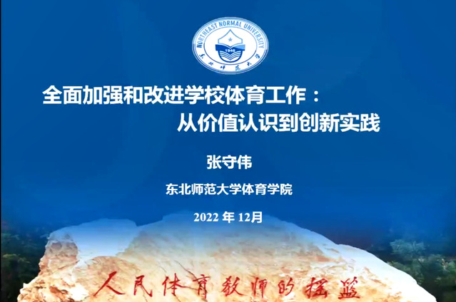 12月7日下午,东北师范大学体育学院院长、博士生导师张守伟教授应邀为学院师生作了一场题为《全面加强和改进学校体育工作:从价值认识到创新实践》的线上报告。体育学院院长岳贤锋、副院长孟国正、刘光同及部分师生共200余人聆听了此次报告。报告由岳贤锋主持。