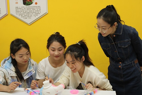 活动中,同学们挑选心仪的娃娃,进行涂色DIY,将纯白单调的娃娃,绘上缤纷的色彩。绘制的娃娃通过色彩与情感的搭配,让娃娃不只是一个简单的作品,而是以情感为载体,投射出大学生潜意识层面的信息,使其潜意识的内容视觉化。帮助大学生抒发情绪、认识自我、调整心态,是良好的心理辅导方式。随着作品初具雏形,成员们也愈发热烈地交流起来,现场一片欢声笑语。有的同学索性多人合作,共同创作与交流,结交了新朋友,增进了师生间的情谊。