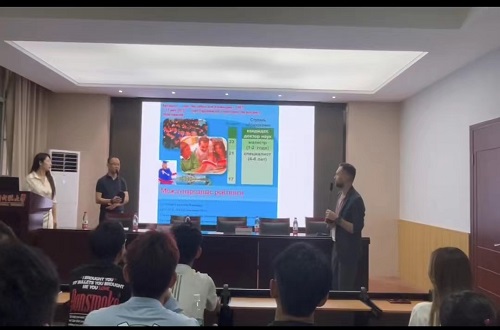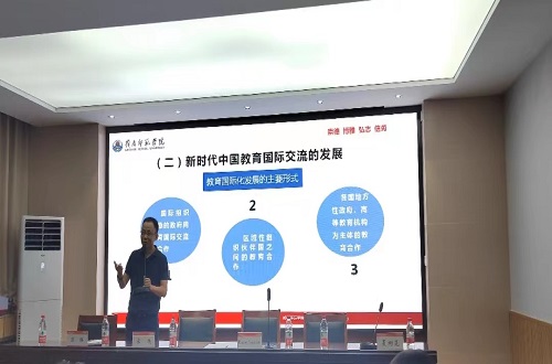 首先,夏树花向与会师生介绍了Dzmitry Smaliakou和宋鹏两位主讲老师以及与会的基本情况,特别强调宋鹏作为我院01级运动训练专业优秀校友为我院国际交流工作做出的突出贡献。Dzmitry Smaliakou博士从白俄罗斯的悠久历史、体育氛围、人文风情等方面入手向大家深入绘声绘色地介绍了白俄罗斯的大学历史和高等教育系统的基本架构,然后围绕白俄国立体育大学高等教育学科发展与建设的焦点学术问题展开汇报。宋鹏博士专题为《以高等教育国际化推动学校高质量发展》的报告主要从高等教育国际化的形成与发展、大政方针、现况和推进方向三个方面进行,鼓励中外合作办学、引进外籍专家教师和吸引来华留学生,同时也鼓励国内教师参与境外研修、培训,学生出国留学,真正落实高等教育国际化,为我国培养出更多的优秀人才。
