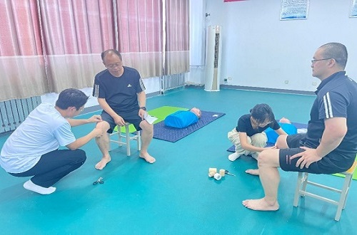 在肌贴的使用操作中,王建设老师随机向学生提问不同部位受伤该如何使用肌贴,考核了全方位的肌贴贴法,包括肩关节、腰部、肘关节、腕关节、膝关节等部位,使学生更全面的了解肌贴的功效和作用,掌握常见的治疗运动损伤的肌贴贴法。