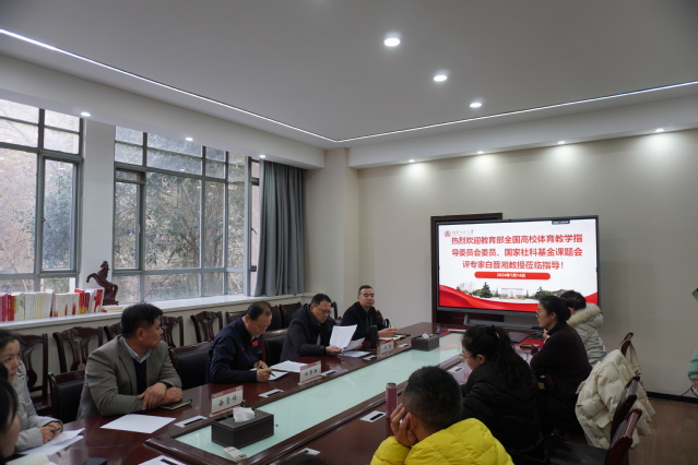 百年筑梦立德铸魂、博学笃志求实创新。1月14日上午,体育学院召开国家社科基金项目论证研讨会,教育育部全国高校体育教学指导委员会委员,国家社科基金课题会评专家,吉首大学博士生导师白晋湘教授莅临指导,校社科处处长段勃、体育学院院长岳贤锋、副院长孟国正、夏树花及部分教师参加此次论证会,会议由岳贤锋主持。