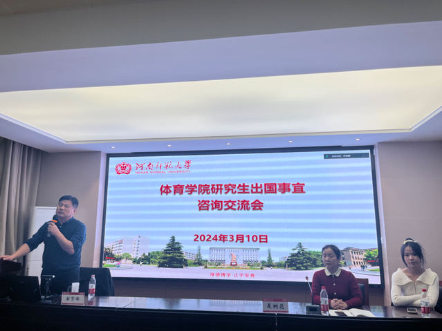 3月10日下午,体育学院在东区体育学院一楼报告厅开展题为“体育学院研究生出国事宜咨询交流会”的交流活动。体育学院院长岳贤锋出席,泰国醒民学校孔子学院志愿者杨晨以及白俄罗斯国立体育大学留学生杨欣钰和丁艺姿分享了出国经验。体育学院近百名学生参与此次交流活动,活动由体育学院夏树花副院长主持,