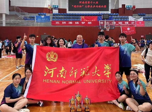 第18届“建行杯”学生乒乓球比赛(大学生组)由河南省教育厅主办,南阳理工学院举办,共有来自全省40所高校500余名运动员参赛。我校乒乓球队由孟国正任领队,姚远任教练,带领11名运动员参加了竞技团体及单项的角逐。经过激烈比拼,由化学化工学院林羽飞、文学院方筱月和物理学院许如一组成的团队获得甲组女子团体冠军;由国际教育学院体育教育专业李承卓、陈珏、毛宁博组成的团队获乙组男子团体第三名;由体育学院运动训练专业李思奇、张严月和张若兰组成的团队获丙组女子团体第三名。在单项比赛中李承卓和陈珏获乙组男子双打冠军,李承卓获得乙组男子单打第三名,张严月获得丙组女子第三名,林羽飞和许如一获甲组双打第五名,体育学院运动训练专业琚先翔和王一昊获得丙组男子双打第五名,林羽飞和方筱月并列甲组女子第五名。