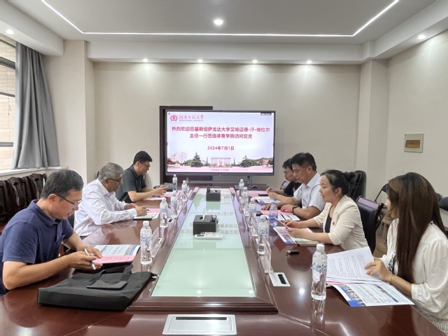 2024年7月1日,巴基斯坦萨戈尔大学校长凯萨尔·阿巴斯等率团访问我校。巴基斯坦萨戈尔大学体育处主任艾哈迈德·汗·哈拉尔到体育学院指导工作。体育学院院长岳贤锋、国际合作与交流处副处长焦克非、体育学院副院长夏树花、陈璐、范永召、张晓亮等老师陪同。