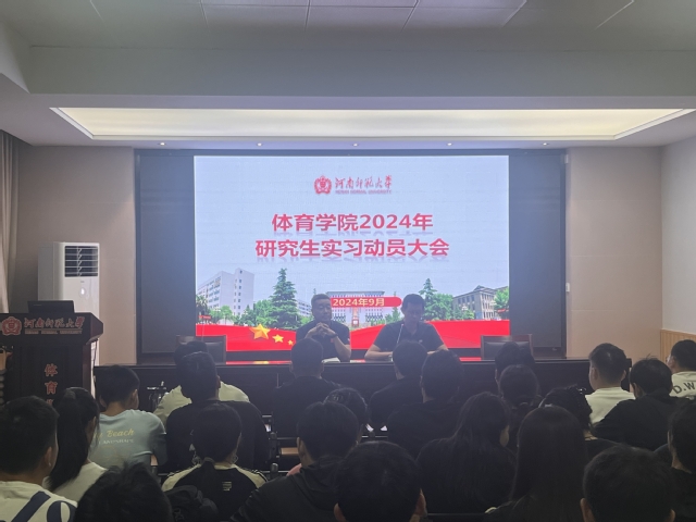 为推动我院研究生实习工作科学高效进行,切实提高学生理论与实践相结合的教育综合素质,2024年9月2日晚,体育学院于东区一楼会议室召开了2024年体育硕士专业学位研究生专业实习动员大会,会议由李玉周副院长主持,付强老师和全体2023级体育硕士专业学位研究生参加。