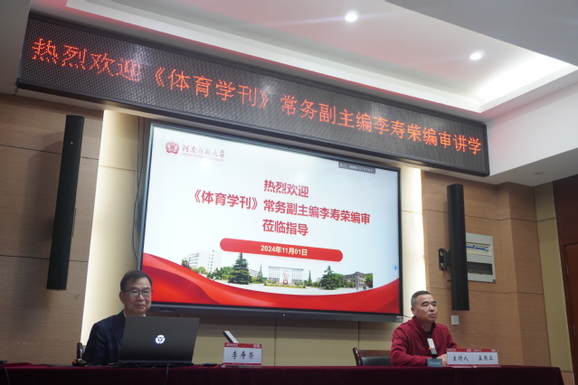 10月31日下午,《体育学刊》常务副主编李寿荣编审应邀为我院师生进行了一场关于《如何写好一篇体育学术论文》为主题的专题讲座,体育学院副院长孟国正、青年教师及学院研究生共计80余人聆听了本次报告。报告由孟国正主持。