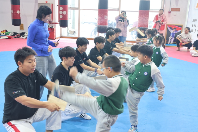 活动伊始,在志愿者们的悉心引领下,伟德官网下载苹果版幼儿园大四班的小朋友们带着满满的好奇与兴奋走进西区综合体育馆。馆内,体育学院学生们正在进行跆拳道、武术、体操等课程的学习与训练。在跆拳道课堂上,几位跆拳道的教练员向学生悉心讲解跆拳道知识,手把手教授跆拳道动作,让幼儿在积极互动的同时体验了体育运动的健康与快乐;在武术课堂上,武术队的队员们英姿飒爽,动作刚劲有力,一招一式尽显中华武术魅力。体操课上,体操队员们精神焕发,复杂的跳跃、平衡和翻滚动作,收获了小朋友们阵阵掌声。小朋友们通过观摩了大学生的训练过程,被他们的专注神情、规范动作和拼搏精神所感染,纷纷发出赞叹:“大学里的哥哥姐姐们太厉害了,我们也要努力锻炼,变得更强壮。”
