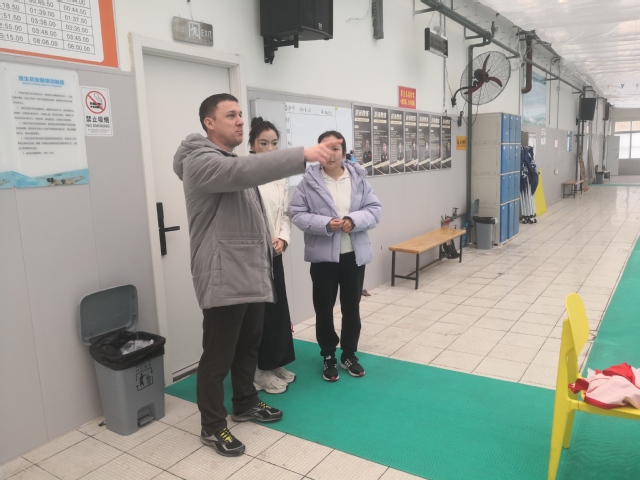 克利诺夫·弗拉基米尔·弗拉基米拉维奇一行,观摩了综合实训馆、球类馆、田径场、武术馆及游泳馆等上课情况,并与正在上课的学生进行互动交流。弗拉基米尔校长观看了精彩的传统武术表演,通过翻译了解使用的兵器。随后与学生们进行了互动交流,分享了武术项目在白俄的开展情况。