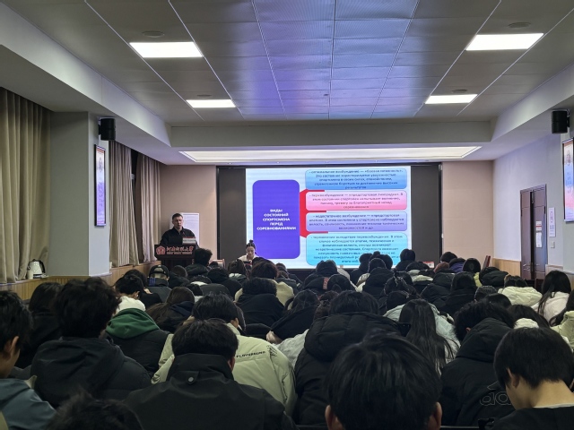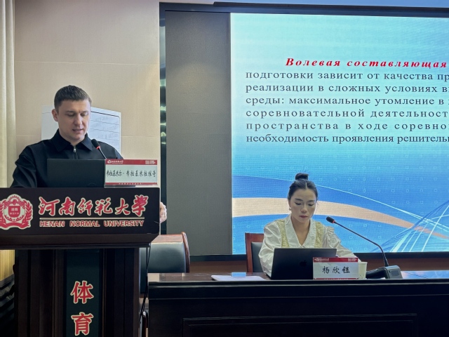 夏树花向与会师生介绍了弗拉基米尔・弗拉基米拉维奇教授以及会议的基本情况。随后,弗拉基米尔·弗拉基米拉维奇教授对心理训练的概念、目标、任务及其分类进行了学术阐释,并着重分析了赛前心理状态的不同类型以及影响心理抑制状态的内外部因素,对运动员的赛前心理动员、赛时心理战斗状态以及赛后心理恢复进行了全面的理论剖析。参会学生围绕运动过程中存在的心理状态为核心议题,提出一系列具有针对的专业性问题。随后,弗拉基米尔・弗拉基米拉维奇教授凭借深厚的学术造诣与丰富的实操经验,给予耐心且专业的解答。