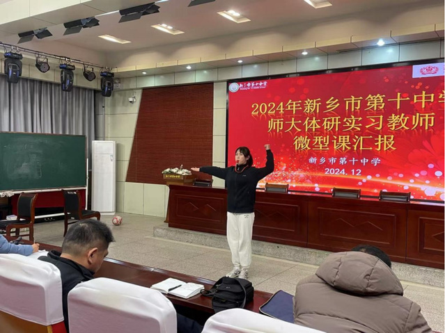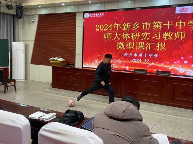 12月19日,在新乡市十中学举行了体育学院体育硕士研究生实习微型课汇报展示活动,由中原名师侯继军老师主持。此次活动旨在展示实习生的教学成果与成长,得到了校方和体育学院的高度重视。此次汇报展示活动得到了体育学院和新乡市十中的高度重视。