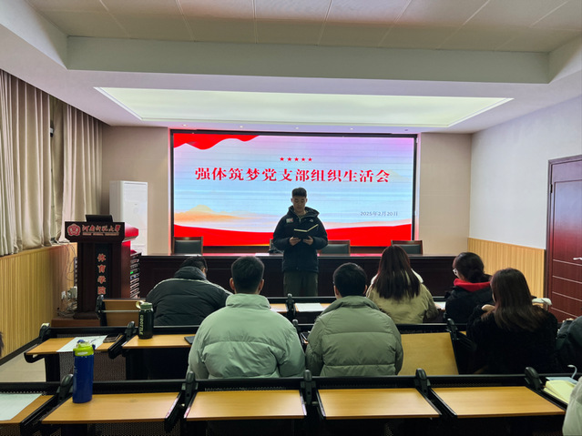 为深入学习贯彻习近平新时代中国特色社会主义思想,全面加强党的建设,提升党支部的活力与凝聚力,体育学院强体筑梦党支部积极响应学院党委要求,严格按照“四个带头”,2月20日中午,在东区一楼会议室开展组织生活会及民主评议党员会议。