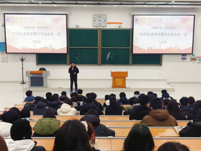 新学期伊始,为引导学生赓续中华文脉,坚持守正创新,激励学生坚定理想信念,凝聚思想共识。以2025年春季学生返校开学为契机,2月28日下午,体育学院2024级本科生在文昌楼302举办了新学期开学思政第一课。辅导员张远航,兼职辅导员赵苑霖及2024级全体本科生参会,活动由2024级辅导员张远航主持。