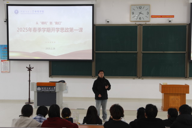 2月25日上午,体育学院2023级本科生于文昌楼302举办新学期开学思政第一课。本次思政课以“以哪吒之志,启奋新进程”为主题,旨在激励同学们在新学期树立远大理想,勇于拼搏奋斗,为实现中华民族伟大复兴的中国梦贡献青春力量。辅导员刘广宣、兼职辅导员刘力源以及2023级全体本科生参加了此次活动,活动由刘广宣主持。