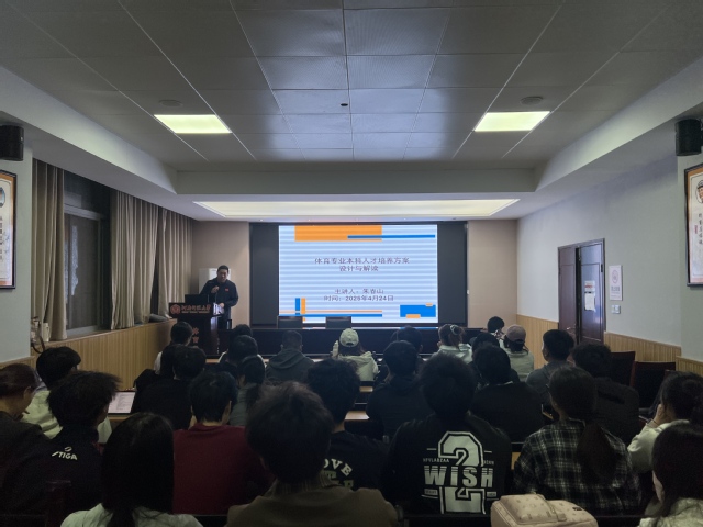 随后,朱春山以“体育专业本科人才培养方案设计与解读”为主题,从理论高度与实践维度展开专题培训。他首先从“健康中国”战略和“体教融合”政策切入,强调体育课程的不可替代作用,提出“体育不仅是技能教育,更是人格教育”。针对“如何成为一名合格的体育教师”,他讲道:一是夯实专业基础;二是厚植教育情怀;三是注重因材施教。最后,朱春山老师系统解读了体育学院各专业的培养目标及学分组成。