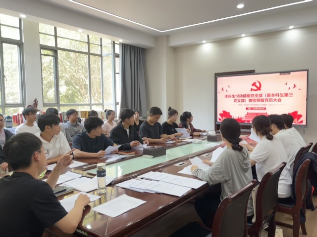为进一步加强党员队伍建设,强化党员责任担当,5月24日下午,体育学院本科生悦动健康党支部在学院会议室召开预备党员接收大会。本次会议由党支部书记安东主持,支部全体党员参与。