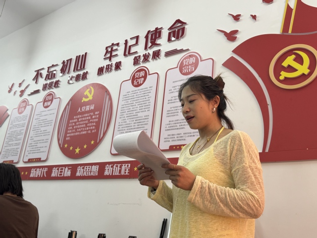 支部书记韩改玲宣读支部决议,对新接收的预备党员表示祝贺,并勉励她以此次大会为起点,加强政治理论学习,严守党的纪律,在学习和工作中勇担使命、争当表率。