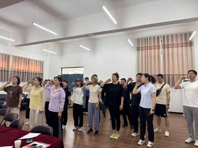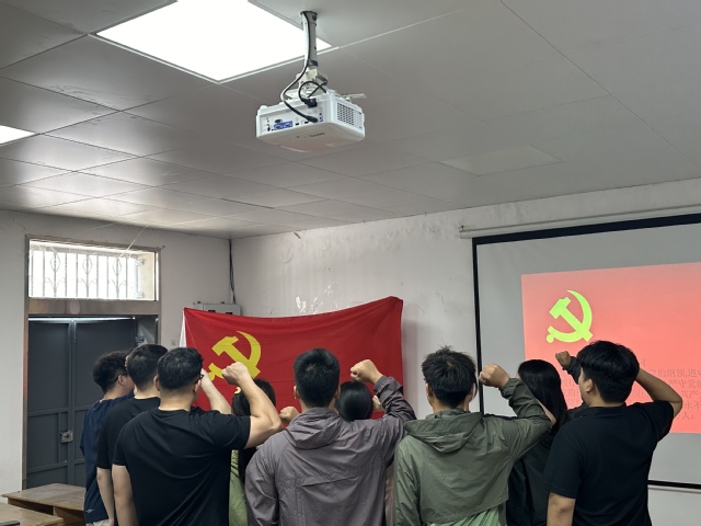 随后尹世聪在致辞中,对预备党员们提出殷切期望,鼓励他们在今后的学习与工作中,以党员标准严格要求自己,不断提升政治素养与业务能力,为党和人民的事业贡献力量。紧接着,赵得利作为领誓人,带领 8 名预备党员面向鲜红的党旗,高举右拳,庄严宣誓,铮铮誓言响彻现场,字字句句都饱含着新党员们对党的忠诚与为共产主义奋斗终身的决心。