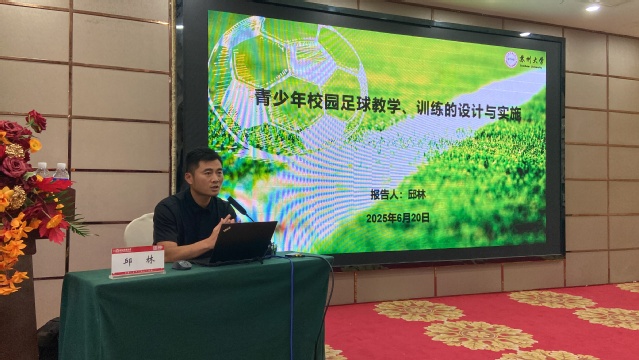 6月20日下午,苏州大学体育学院院长助理、博士生导师邱林教授莅临我校讲学,为体育学院100名师生进行了一场以《青少年校园足球教学、训练的设计与实施》为主题的专题讲座。报告由体育学院社会服务工作秘书岳耀鹏主持。