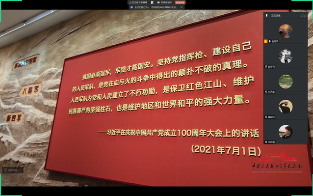 为传承党的优良作风,增强党员的使命担当意识,7月9日下午,体研菁英党支部以线上会议形式开展了“传承优良作风 践行使命担当”主题党日活动。本次活动由党支部书记赵苑霖主持,全体党员参加,旨在通过线上VR展厅走进中国人民抗日战争纪念馆,重温革命历史,汲取奋进力量。