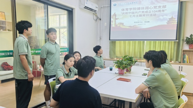 为庆祝中国共产党成立104周年,进一步强化高校教师党员的党性修养和责任担当,大球党支部于7月8日在体育学院小白楼电教室召开了以“庆祝中国共产党成立104周年”为主题的党日活动,此次活动由党支部书记董梦婕主持,党支部全体党员参加。