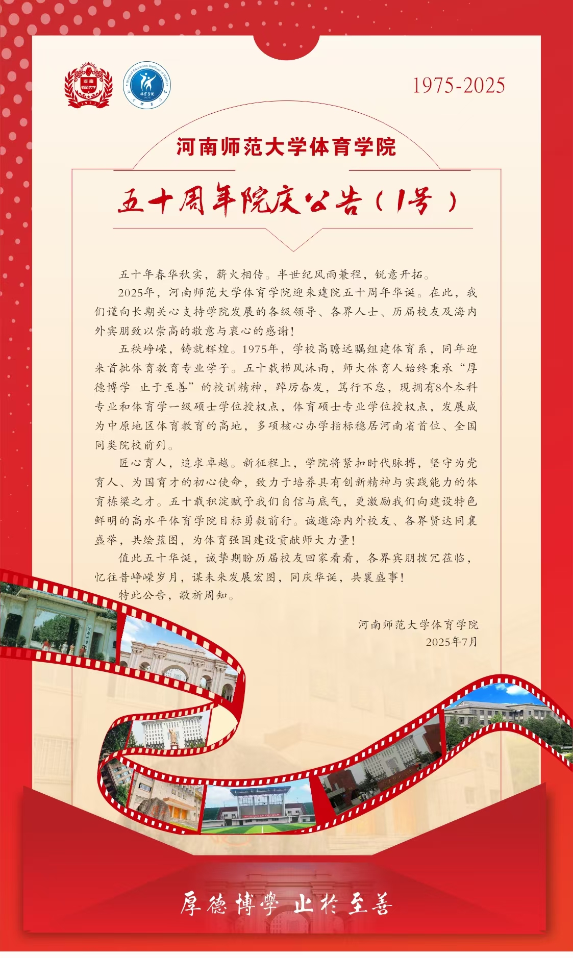 伟德官网下载苹果版体育学院50周年院庆公告(1号)