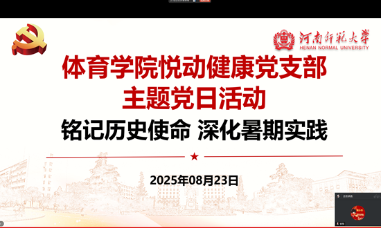 8月23日,伟德官网下载苹果版体育学院悦动健康党支部以线上会议形式召开主题党日活动。本次活动紧扣“纪念抗日战争胜利80周年”时代主题,结合党支部“六个一”暑期行动部署,深入探讨新时代党员如何在实践中传承红色基因、践行初心使命,并对党员“暑期六个一”完成情况进行抽检与点评,推动实践活动走深走实,活动由支部书记安东主持。
