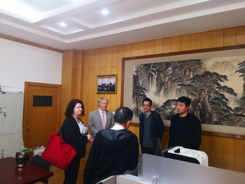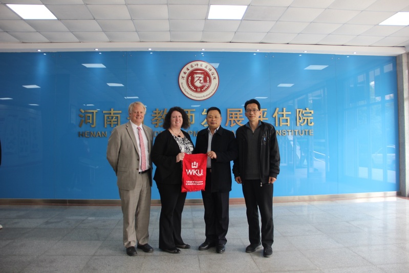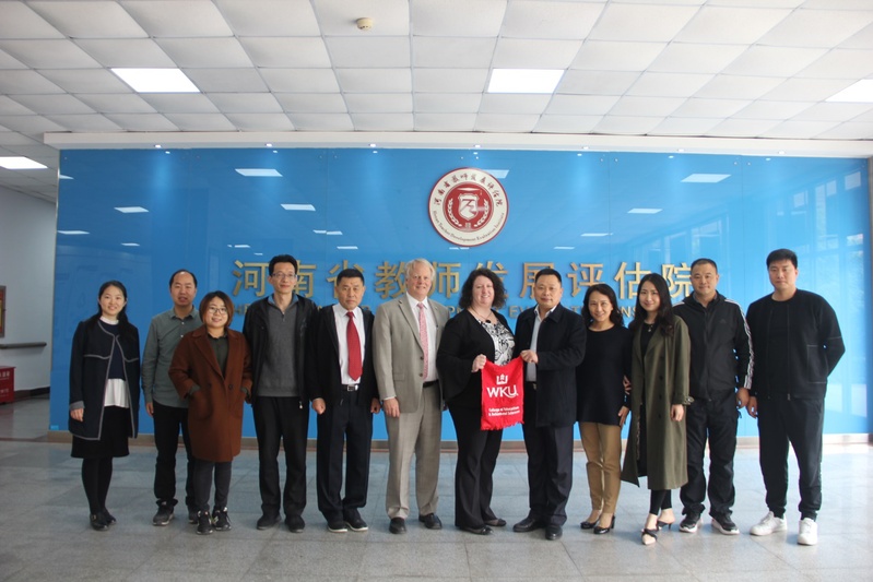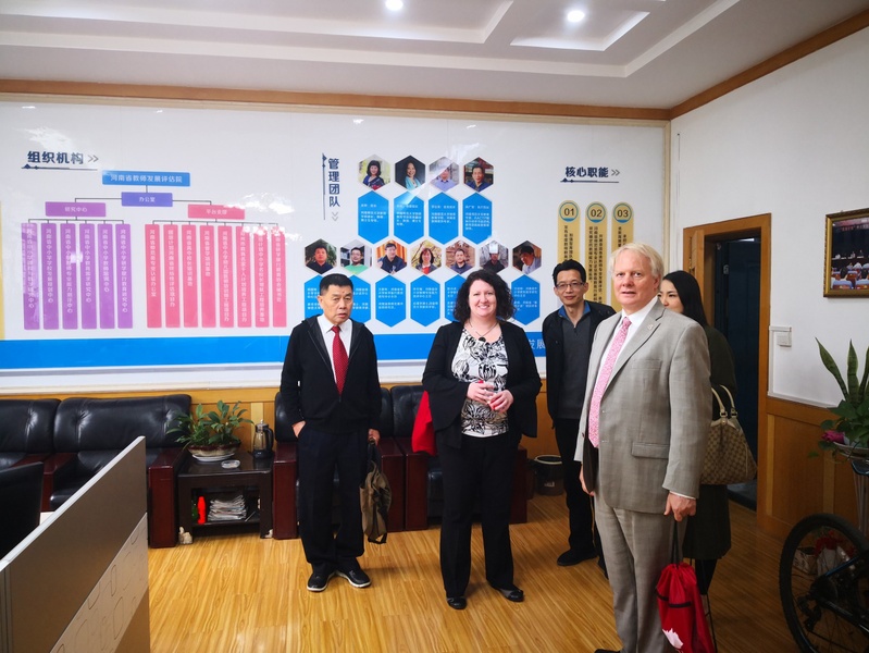 2019年4月29日上午,肖非亚博士带领美国西肯塔基大学的副教务长约翰•桑尼伽德和教育学院院长柯琳•墨菲考察了河南省教师发展评估院。肖非亚博士详细介绍了评估院的发展愿景、机构设置、教师发展评估与培养计划及成果,两位专家对此给予了肯定。最后两位专家在教师发展评估院文化墙与评估院的专家团队进行了亲切的合影留念。