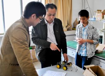 此次活动在主持人亲切的话语的中拉帷幕,活动主要分为三个环节。首先,由我院学生会主席杜航帆同学介绍了科技文化节的活动流程及具体时间。本次科技文化节以知识竞答为主线,全校学生均可参加,在活动期间将举办科技制作、科技讲坛、科创作品大赛和义务维修等一系列活动,活动将持续一个月。随后,陈书记为我院刚成立的科创实验站揭牌并参观了科学实验站对工作人员进行了指导。他充分肯定并向大家展示了我院2010级学生郑立军制作的由手机蓝牙控制的小车,提出向实验站补充实验室资源,以此表示院领导对同学们科创能力的肯定及支持,他说道:“我们科创实验站缺什么都可以向院领导提出,实验室的资源就是供大家使用的,同学们一定要利用好这些机会。”最后,陈书记宣布本次科技文化节正式开幕,预祝各项活动圆满成功进行。