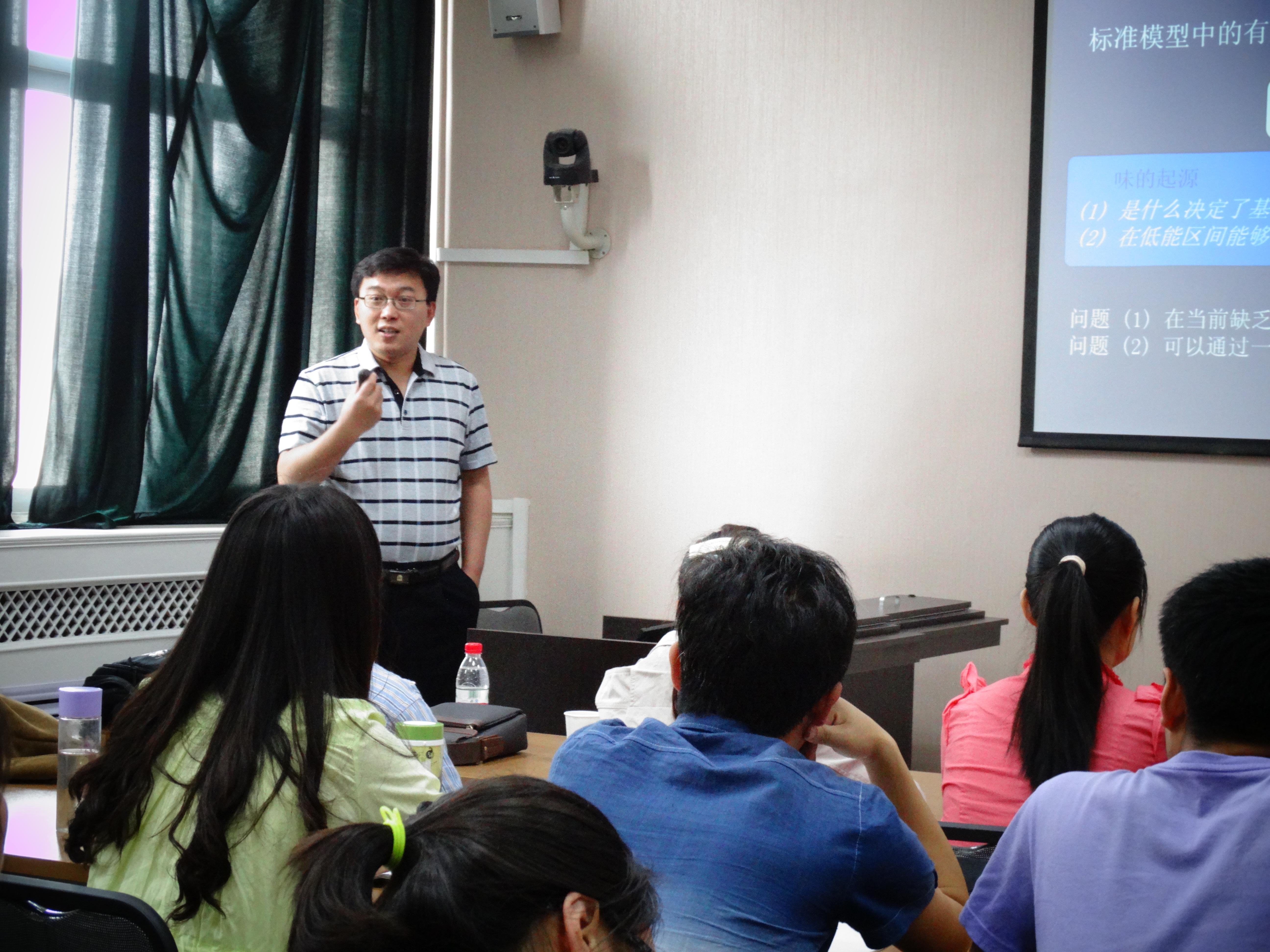 李海波研究员介绍了世界上关于轻子味破坏的粒子物理理论和实验现状和进展,基于日本KEK的J-PARC强流质子加速器,COMET实验利用强流质子束流打靶产生pion介子,最终得到世界上最高流强繆子束流,是高能实验中灵敏度最高的实验之一,可以用来寻找缪轻子到电子的转换过程,即带电轻子味破坏过程实验寻找,并对未来实验前景做了展望。报告结束后,李海波研究员与在场师生就大家感兴趣的问题进行了热烈的讨论,并邀请和鼓励学生参加相关物理研究,使在场师生受益匪浅。