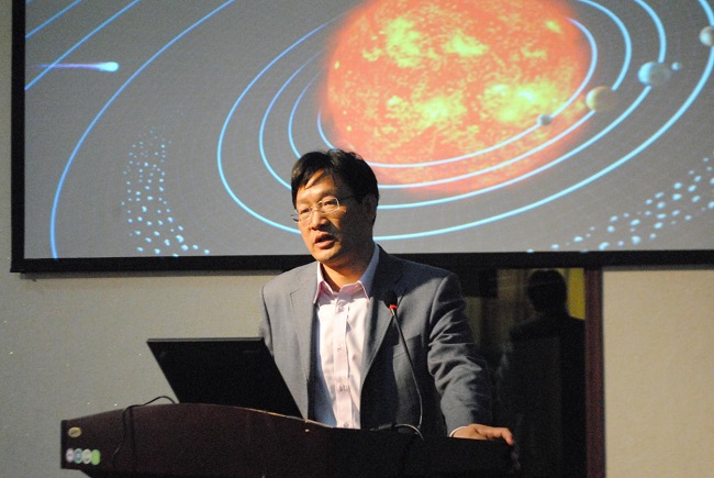 李保权研究员就空间天气及太阳活动课题展开了报告,着重讲解了空间天气和太阳活动对卫星安全、通信、导航、天基侦察雷达、弹道防御导弹、天波超视距雷达、载人航天、电网传输等军事活动的影响,并介绍了我国关于空间天气研究方面的技术现状与进展。李保权研究员利用模型建立的方法进行讲述,并对老师和同学们的提问作出了详细解答。