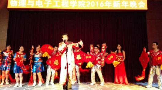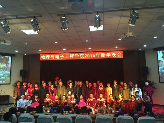 春满人间欢歌阵阵,福临门第喜气洋洋。在2016年1月19日晚上这个美好的时刻,我院教职工新年晚会在物理北楼三楼报告厅隆重举行。学院党政领导和全体教职工及家属参加此次联欢晚会。