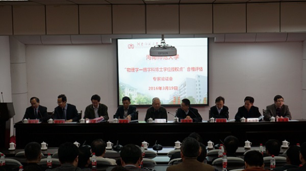 3月19日,由我校组织召开的“物理学一级学科博士学位授权点”合格评估专家论证会在勤政楼第四会议室举行。中国科学院张肇西院士、南京大学李建新教授、武汉大学刘正猷教授、中科院“百人计划”乔从丰教授组成的专家组对我校“物理学一级学科博士学位授权点”进行了论证和指导。马治军副校长,研究生学院院长刘玉芳出席了会议,物理与电子工程学院党政领导、教师和研究生代表及相关职能部门负责人参加了此次论证会,会议由物理与电子工程学院副院长彭玉峰主持。