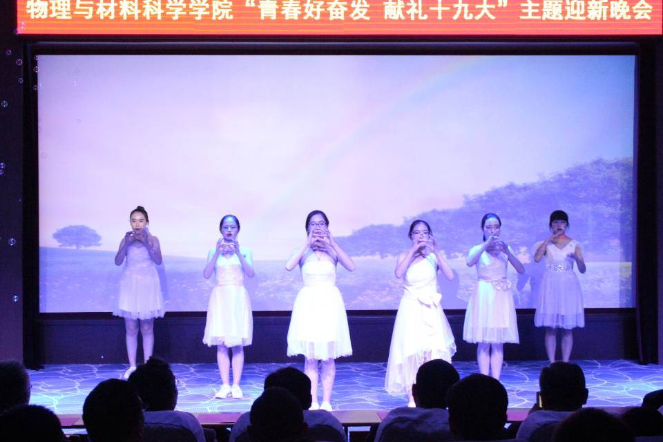 本次晚会分为四大模块:缘起四方、青春时光、璀璨之梦、相约起航。晚会节目众多,精彩纷呈。DS街舞社团以劲爆街舞暖场后,pop音乐协会用两首英文歌《Come toghter》、《All my loving》给节目拉开序幕。吉他弹唱《童话镇》曲调轻松愉快,勾起了大家童年的回忆;汉服社的舞蹈《半壶纱》步调平缓但舞姿优美,带来了一场视觉盛宴;情景剧手语《没有什么不同》饱含人生哲理,给人以心灵上的共鸣、视觉上的享受。幽默诙谐、寓教于乐的相声《规矩论》把全场气氛推向高潮,引得全场笑声连连。二胡、古筝、钢琴合奏的《茉莉花》完美展现东方乐器的神韵与西方乐器优雅;巴乌独奏《多情的巴乌》的优美音调令同学们拍手叫绝。最后,《青春好奋发,献礼十九大》主题朗诵更是将晚会推向了高潮,悠然的音乐、高昂的音调、发自肺腑的感叹,更是唤醒了大家的爱国热情,表白墙上满满的爱国寄语,每个人都激情昂扬,振奋不已。伴随着诗朗诵的尾声,晚会落下帷幕,全体演员和领导老师合影留念,记下这美好难忘的时刻。